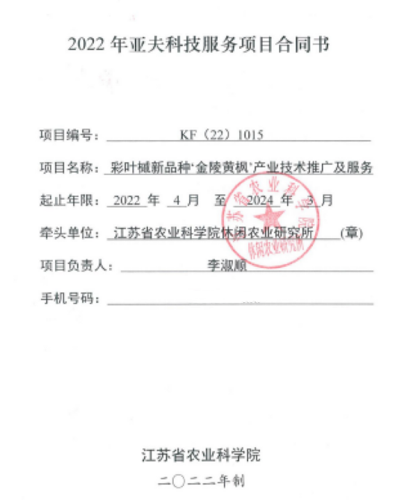 近日,金杉生態環境科技(南京)有限公司與江蘇省農科院休閑農業研究所聯合推動的<‘金陵黃楓’產業技術推廣及服務>成功申報2022年亞夫科技服務項目。