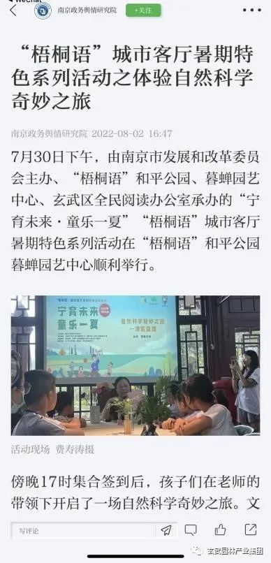 和平公園暮蟬書屋獲2022年度南京市公益閱讀推廣活動認證扶持。暮蟬書屋作為十家“書香玄武”讀書角之一,通過閱讀分享、自然教育、科普宣傳、學術交流等多種形式開展公益閱讀推廣活動,展現綠色南京、人文南京、書香南京的獨特魅力,厚植“萬物并育”的生態理念,致力于打造城市生態文明共享閱讀空間,助力“世界文學之都”品牌建設。通過舉辦各類優質閱讀活動宣傳與推廣,積極投身于新時代文明實踐志愿服務,推進全民閱讀向縱向發展,增強人民群眾文化獲得感。截至2022年10月,已面向南京市兒童和青少年、社區困境兒童、社區老人舉辦公益活動24場,其中公益閱讀推廣活動7場,飽受市民好評,市級媒體多次進行報道。此外,自10月起,暮蟬積極關愛幫扶一老一小特殊群體,每周二、周四推出親子讀書會活動,喚起家庭對親子閱讀的關注,為建設人民滿意的養老托育高質量發展典范城市貢獻力量。